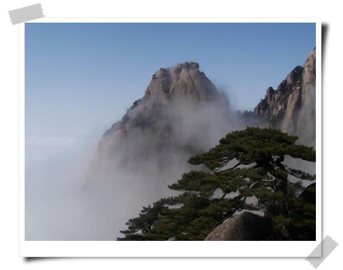 ? 一大早,我們在云古寺坐上纜車,整個黃山后山的風光就在腳下了。下面是郁郁蔥蔥的黃山松,群山峻嶺緩緩向我們壓來,仿佛整個山嶺,除了渺小的我們,空無一人,孤寂的天空中,偶爾滑過孤鳥的身影,鳥鳴山更幽啊。因為是第一次來黃山,不時呈現(xiàn)在眼前的壯麗景觀,讓我已經(jīng)瞠目結舌,說不出一句話來,此時心靈上與大山已經(jīng)產生了共鳴,任何言語已經(jīng)顯得多余。短短的幾分鐘儼然已經(jīng)給了我最初的印象,仿佛初戀般讓人心潮久久不能平息,我對這座大山的未知和神秘更加地期待和向往。奇松、怪石,還有山上逐漸加重的云霧。黃山呈現(xiàn)的是一種自然風光之美,一花一草,一山一水都是造物主的鬼斧神工,讓你不由不驚嘆于他的神奇。遠處突出在云海中的山峰,時隱時現(xiàn),真的好像驚濤拍岸,好像潮起潮落。靜態(tài)的山石松柏,動態(tài)的云霧繚繞,結合得完美無瑕。