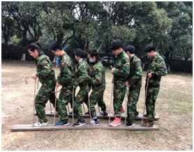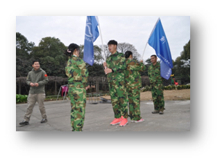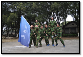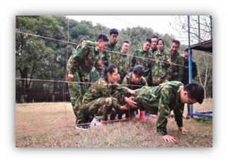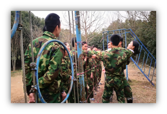 ? 1月15日一早,我們陸續(xù)集合在訓(xùn)練營并換上訓(xùn)練服,所有人的精神面貌立馬改變,個(gè)個(gè)英姿颯爽。在教練一聲口哨下,我們迅速成排成隊(duì)站齊。經(jīng)教練明令,拓展期間不允許遲到早退,并需將隊(duì)伍分為兩小隊(duì),并選派隊(duì)長(zhǎng)與政委各一名。經(jīng)商量后急于大顯身手的年輕隊(duì)員組成東方紅隊(duì),口號(hào)為日出東方,唯我不敗;另一隊(duì)則是集智慧與經(jīng)驗(yàn)于一身的老狼隊(duì)。
