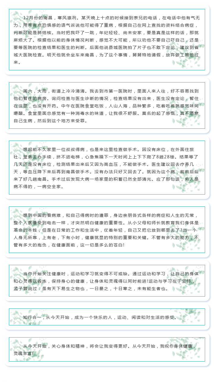 人生唯健康與學(xué)習(xí)不可辜負(fù)