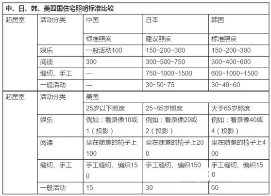 中日韓美四國住宅照明標(biāo)準(zhǔn)差異明顯