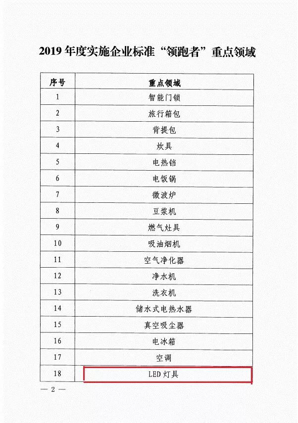 LED燈具被列入《2019年度實施企業(yè)標(biāo)準(zhǔn)“領(lǐng)跑者”重點領(lǐng)域》